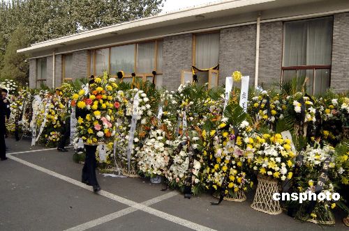 中国前国家主席刘少奇的夫人王光美于十月十三日在北京辞世,享年八十五岁。图为十月十七日,工作人员在北京解放军305医院王光美灵堂前摆放各界吊唁花圈。