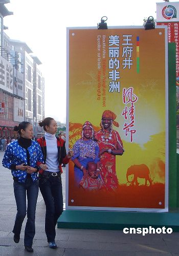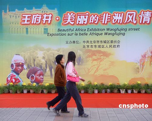 11月1日,中非合作论坛在北京召开,“美丽的非洲风情节”在王府井大街举办,作为风情节内容之一非洲风情图片展,吸引了过往游客。中新社发 玉龙 摄