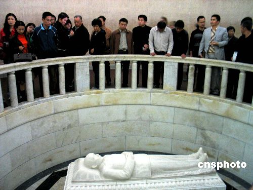 11月11日,各界人士在南京中山陵瞻仰孙中山先生灵柩。今年11月12日是孙中山先生诞辰140周年,连日来,江苏省各界人士和中外游人来到南京中山陵参观,缅怀这位伟大的民主革命先行者,纪念中国民主革命的先行者孙中山先生诞辰140周年。中新社发 钟山 摄