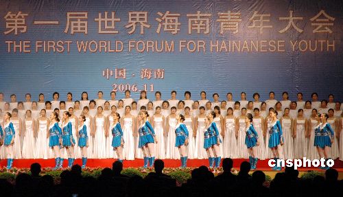 第一届世界海南青年大会十一月十八日上午在博鳌开幕,来自世界十三个国家和地区的五百多名世界海南青年与会共商合作发展大计。中新社发 王辛莉 摄
