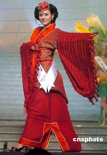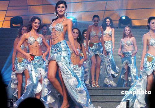 2006环球皇后竞选全球总决赛颁奖晚会9月14日在浙江象山体育馆隆重登场。来自36个国家的46位佳丽经过民族服饰、美人鱼妆、比基尼等一系列展示后,以泰国的曼谷小姐夺冠,爱沙尼亚的塔林小姐和中国的宁波小姐分别获得亚、季军完美落幕。中国的宁波小姐还获得了单项奖 “最佳人气皇后”奖。中新社发 傅婷婷 摄