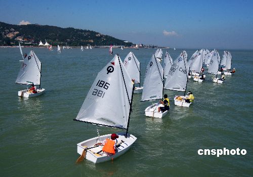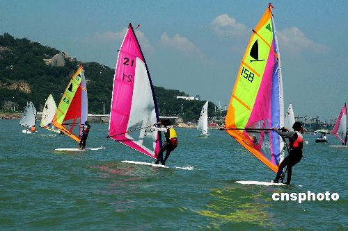 7月29日,第十三届福建省运会的开赛仪式在厦门曾厝垵环岛路旁的厦门水上运动中心举行,第十三届福建省运会海上项目比赛同时在厦门拉开帷幕,本次比赛进行帆船帆板项目的角逐。中新社发 蓝添艺 摄
