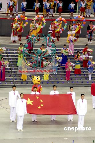 7月29日,第四届全国特奥会在哈尔滨隆重拉开帷幕。本届特奥运动会设田径、游泳、篮球、足球、乒乓球、滚球、羽毛球、轮滑、举重9个竞赛项目和网球表演项目,共10个大项,115小项。比赛从7月29日开始,8月3日结束。其间,还将举行特奥运动员健康项目活动,青少年高峰会议和特奥运动员、家庭领袖及教育领袖论坛等非赛事活动。中新社发 姚庭山 摄