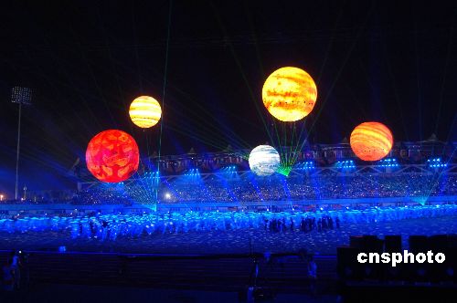 八月十五日,第十一届世界青年田径锦标赛北京开幕,当晚在北京朝阳体育中心举行开幕式。中新社发 廖攀 摄