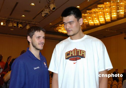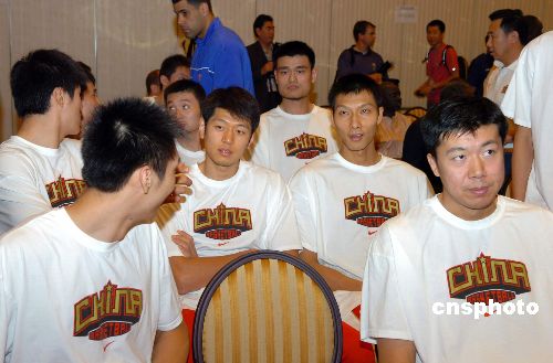二00六世界篮球锦标赛中国队所在的札幌赛地十八日晚举行隆重开幕仪式。有中国、美国、意大利、斯洛文尼亚、波多黎各、塞内加尔六支劲旅参加的D组,被视为此次赛事竞争最为激烈的小组之一。图为中国男篮队员全体参加开幕仪式。中新社发 王健 摄