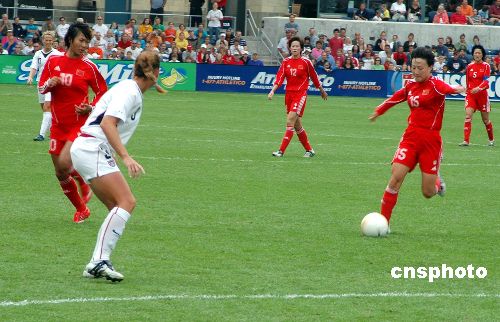 八月二十七日中国女足在芝加哥丰田公园体育场与美国女足进行了一场友谊赛,结果中国队以一比四告负。中新社发 张大卫 摄