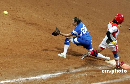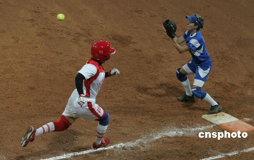 八月二十八日,平均年龄二十四岁的中国队在北京丰台垒球场举行的第十一届世界女子垒球锦标赛小组赛中以三比一战胜意大利队,取得两连胜。中新社发 武仲林 摄