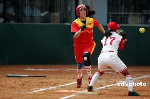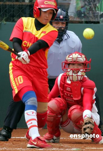 八月二十九日,中国队在北京丰台垒球场举行的第十一届世界女子垒球锦标赛小组赛中以二比零战胜朝鲜队,获得开赛以来的三连胜。中新社发 武仲林 摄