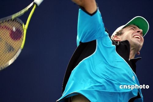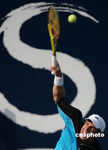 九月十三日,中网五号种子、斯洛伐克名将赫巴蒂在比赛中大力发球。当日,赫巴蒂在北京网球中心举行的二零零六中国网球公开赛正赛第二轮比赛中以二比一战胜奥地利选手皮亚,晋级下一轮。中新社发 武仲林 摄