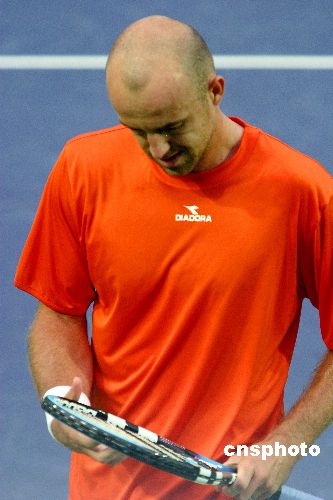2006年9月15日,中国网球公开赛遭“韩流”侵袭,在男单四分之一决赛中,中网头号种子柳比西奇被韩国老将李亨泰以二比零横扫出局,爆了开赛以来的最大冷门。中新社发 鲁谷 摄