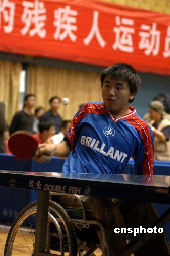 2006年9月17日,江苏省第七届残疾人运动会乒乓球比赛在南京航空航天大学体育馆举行。中新社发 刘建民 摄