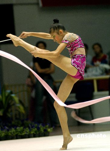 2006年9月25日,全国艺术体操锦标赛在江苏扬州举行。来自全国11支代表队的86名运动员将参加了此次比赛。中新社发 刘建民 摄