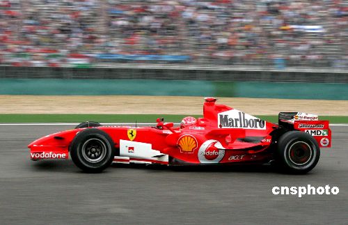 九月三十日,二○○六F1上海站第三次练习赛,法拉利车队著名车手迈克尔-舒马赫(Michael Schumacher)以一分四十秒一九三排名第一。中新社发 汤彦俊 摄
