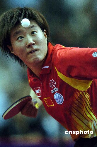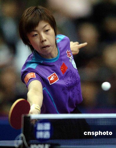 2006年10月1日晚,2006女子乒乓球世界杯赛在中国新疆乌鲁木齐结束。中国的郭焱获得冠军、中国的张怡宁获得亚军、新加坡的李佳薇战胜中国香港的帖雅娜获得第三名。中新社发 吴峻 摄