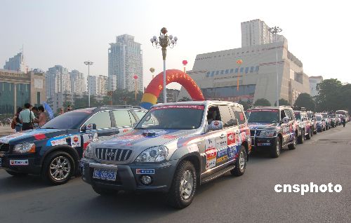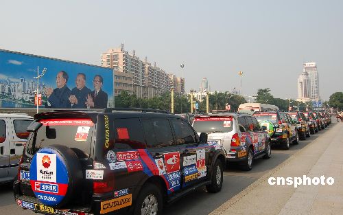 “中国石油杯”二○○六中国—东盟国际汽车拉力赛在广西南宁民族广场前进行出发前演练,正式比赛于十月六日举行。车队将经过中国和越南、老挝、泰国、马来西亚、新加坡、柬埔寨等东盟六国,预计十月二十六日返回南宁,整个赛程约一万一千公里。中新社发 刘万强 摄