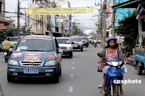 十月十一日,“和谐之旅”二○○六中国—东盟国际汽车拉力赛从泰国南部最大城市合艾出发,向马来西亚第二大城市槟城(乔治市)进发。中新社发 刘万强 摄