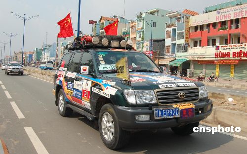 十月二十日,“和谐之旅”二○○六中国—东盟国际汽车拉力赛车队从柬埔寨首都金边出发后,从湄公河通过渡轮进入越南境内,当天抵达越南第一大城市胡志明市。中新社发 刘万强 摄