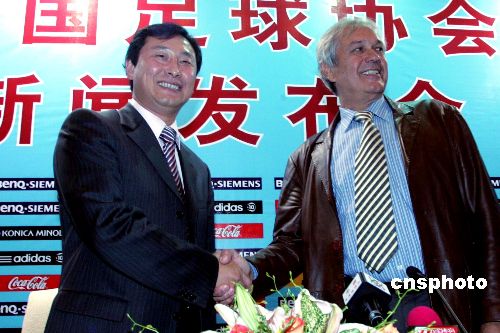 十月二十一日,中国足协在北京昆仑饭店召开新闻发布会,正式宣布聘请前加纳主帅杜伊科维奇担任中国U23男子足球队主教练,从而使杜伊科维奇成为继施拉普纳、霍顿、米卢和阿里汉之后第五位执教中国国字号男子足球队的外籍教练。中新社发 武仲林 摄