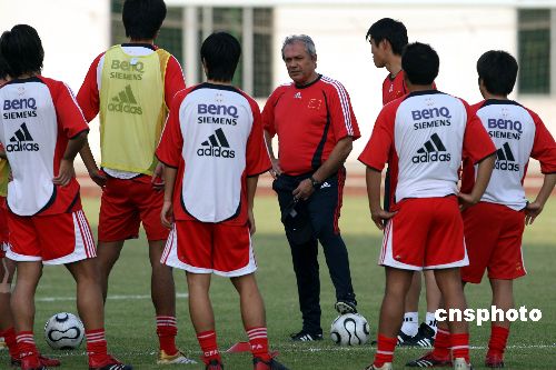 十一月五日,来自塞黑的杜伊(中)在广州正式升帐为中国国奥队主帅,将带领中国国奥队冲击亚运、奥运足球奖牌。中新社发 何泉 摄