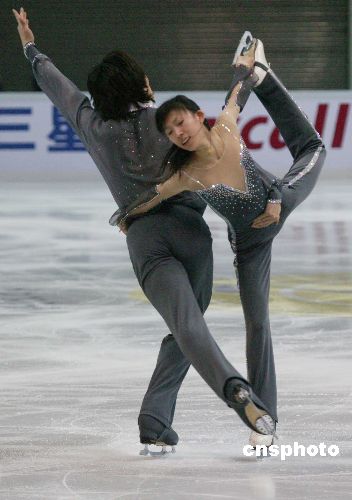 11月9日,2006年世界花样滑冰大奖赛南京站的比赛将在南京奥体中心拉开帷幕,来自16个国家和地区的63名世界顶尖花滑选手将参加这次角逐。而在此之前,“庞清/佟健本赛季南京绝唱”及“申雪/赵宏博明年退役”的一系列传闻更成为本次比赛吸引人眼球的看点,在本土目睹中国双人滑两对优秀组合的告别演出似乎成了很多人期待的情景。这是选手正进行上场前训练。中新社发 吴俊 摄
