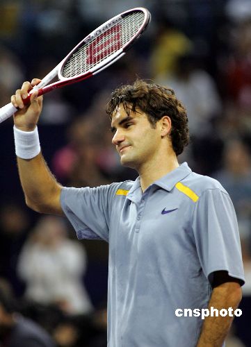 十一月十二日,二○○六年网球大师杯总决赛在上海拉开战幕。在下午进行的首场比赛中,现世界排名第一的瑞士选手费德勒以二比一战胜阿根廷选手胜纳尔班迪安迎来开门红。中新社发 汤彦俊 摄