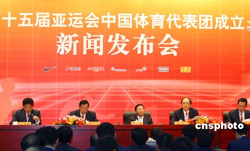 十一月十七日,中国国家体育总局在北京召开新闻发布会宣布第十五届亚运会中国体育代表团正式成立。中新社发 廖文静 摄
