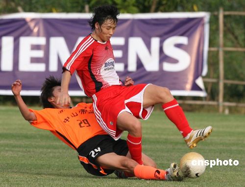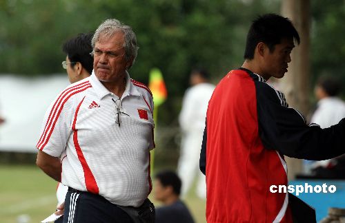 2006后11月19日下午3点,国奥队在清远名将基地与广东全运队进行了一场教学赛,最终以5:3的比分结束了兵发多哈前的最后一场热身赛。国奥队在新任外教杜伊的率领下,向国奥队传达了一个信息,那就是“进攻”。杜伊新理念惯切到比赛中。中新社发 何泉 摄