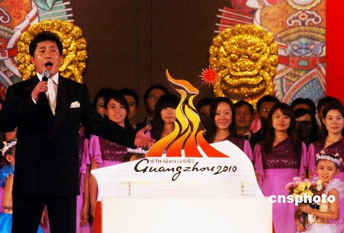 二0一0年广州亚运会会徽,十一月二十六日晚在广州中山纪念堂揭幕。中新社发 柯小军 摄