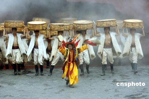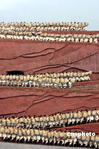 七月二十三日,继桂林阳朔的《印象·刘三姐》之后,由张艺谋、王潮歌、樊跃联合导演的又一实景演出项目《印象·丽江·雪山篇》在云南丽江玉龙雪山的山脚下正式对外公演。“雪山篇”的演出一共起用了近五百名来自十个少数民族的非专业演员以及一百匹云南矮脚马,整个演出以雪山为背景,以民俗文化为载体,巧妙地把自然景观、民俗文化融入到一场原生态的表演实景中。中新社发 盛佳鹏 摄