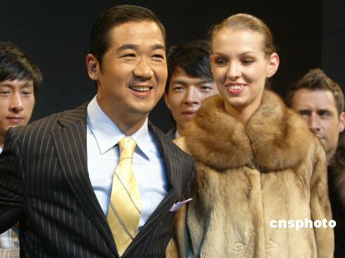 8月7日,“2006/2007 SINOER 男装秋冬系列发布会”在北京举行,是台时装秀在摄影棚搭起的T台上举行,20多名中外模特展示SINOER品牌系列作品,作为该品牌的形象代言人著名电影导演、演员张国立亮相T台与众模特一起展示风采。中新社发 钱兴强 摄