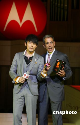 8月28日,摩托罗拉在颇具古典歌剧院风格的中山音乐堂举行了盛大的发布会,宣布周杰伦正式担任摩托罗拉在大中华区的品牌形象大使,并推出周杰伦特别版ROKE E2手机。中新社发 袁方 摄
