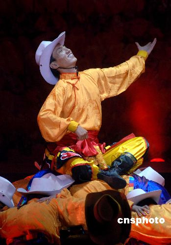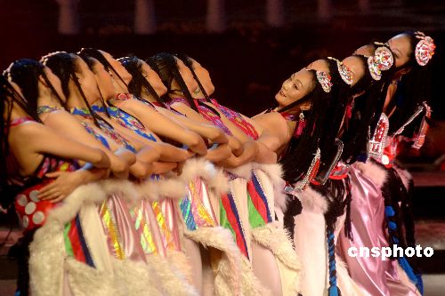 第三届全国少数民族文艺会演——西藏自治区代表团大型歌舞《多彩哈达》9月7日在北京演出。中新社发 张宇 摄