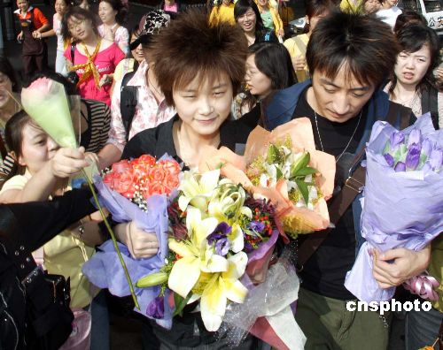 2006年9月23日9:00左右,李宇春来到江苏南京为新专辑《皇后与梦想》作宣传。李宇春下榻南京山西路一家酒店,在从机场到酒店的路上,大批“玉米”前来接机并一路护送。中新社发 吴俊 摄