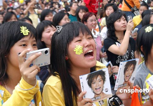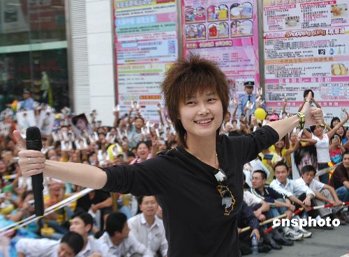 10月6日,正值中秋佳节之际,“超女”李宇春来到武汉市武昌群光广场与武汉的歌迷见面并做新专辑的现场签售,场面十分火爆。中新社发 楚天行 摄