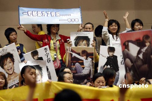 十月十四日,李宇春在河南郑州同歌迷见面,此次李宇春来到郑州,是受一家电台之邀,前来推广个人新专辑的。中新社发 慎重 摄