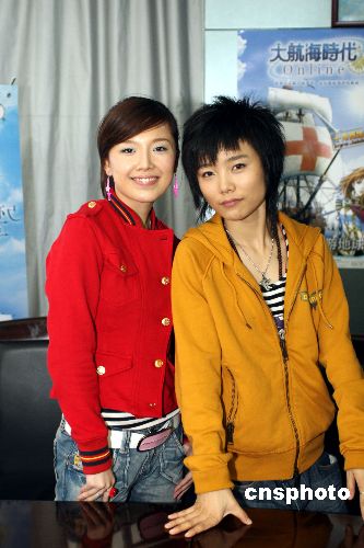 10月29日,“《大航海时代Online》海洋风暴大型玩家同城会”北京站演出在海洋馆举办。据悉,这是网络游戏历史上规模最大范围最广的面向用户(玩家)的交流活动。2006年超女选手许飞和唐笑分别演唱歌曲。中新社发 袁方 摄