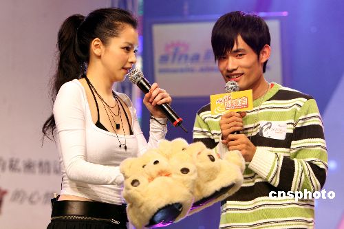 11月2日晚,徐若瑄作客新浪歌会,她激情演唱、热情迸发,令现场歌迷神魂颠倒。在“互动环节”时,徐若瑄与到场歌迷做起了游戏,现场居然出现了她的克隆声音和克隆舞蹈,一位女孩将徐若瑄的声调模仿得出神入化,惹得徐若瑄连连惊呼。一位长像酷似周杰伦的歌迷还为徐若瑄送上了可爱的毛绒拖鞋,整场歌会气氛温馨异常。中新社发 袁方 摄