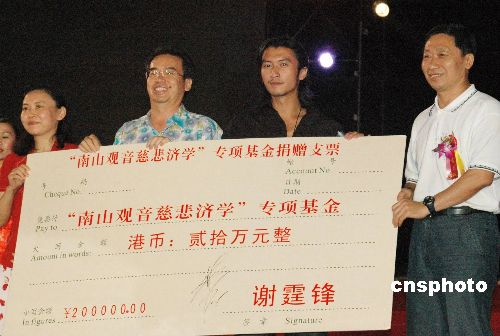 香港艺人谢霆锋11月9日晚参加在海南三亚举行的二○○六“华夏龙情 慈悲济学”大型慈善演唱会,并为“南山观音慈悲济学”基金捐献了二十万港币。中新社发 尹海明 摄