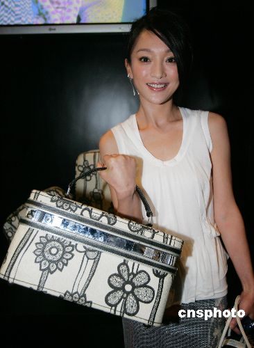 十一月二十二日晚,著名影星周迅在上海出席Samsonite产品发布会,为Samsonite二○○七新款产品发布助阵。中新社发 汤彦俊 摄