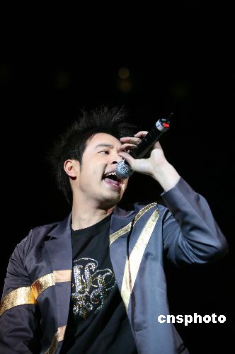 11月28日晚,歌手潘玮柏抵达重庆宣传新歌,图为他在演唱歌曲《反转地球》。中新社发 重庆黄伟 摄