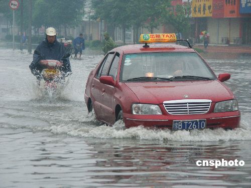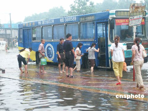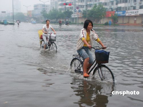 7月2日,河南省开封市持续强降雨,造成市区内一些地段大量积水,给人们的出行带来很大不便。当地气象部门于7月2日已发布了2006年入夏以来首次暴雨黄色预警信号。中新社发 凯枫 摄