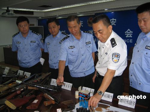 七月七日,广东肇庆警方在为期三个月的缉枪专项行动中,共收缴各类非法枪支三百一十六支,各类子弹一千零七十三发,管制刀具二十四把,并查破涉枪案件八起,打掉涉枪违法犯罪团伙二个,抓获犯罪嫌疑人十二名。中新社发 黄耀辉 摄