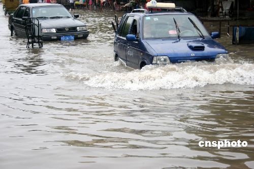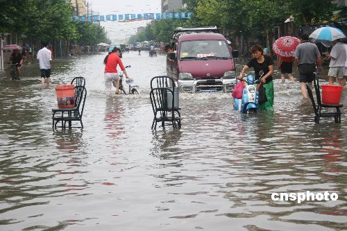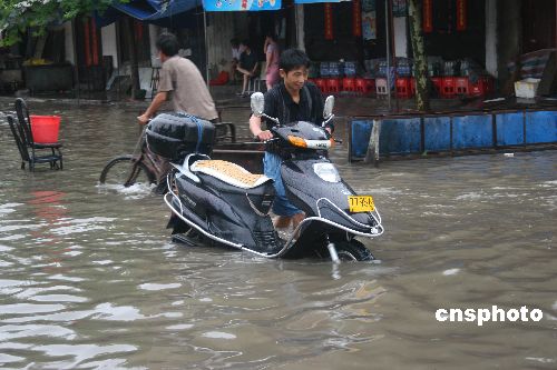 7月10日凌晨,安徽省蒙城县遭受强降雨袭击,城区短时间降雨达110多毫米,强降雨造成城区内部分路段和居民区严重积水。目前,当地有关部门正在组织排涝和下水管道的疏通工作。中新社发 胡卫国 摄