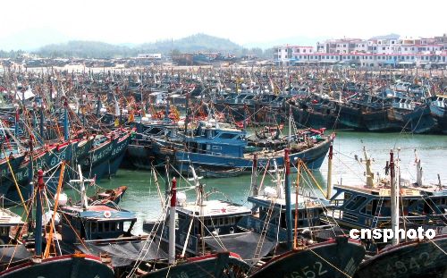 福建东山县全力以赴做好“碧利斯”防御工作,截至7月13日下午3时止,除了伏季休渔期间的拖网张网船1046艘渔船早己在港内外,全县出海的其他作业渔船1300多艘和100多艘运输船油船等己全部返港避风,人员上岸。今年第4号热带风暴“碧利斯”在未来48小时内将加强成台风,并可能在14日-15日登陆福建省沿海。中新社发 谢汉杰 摄