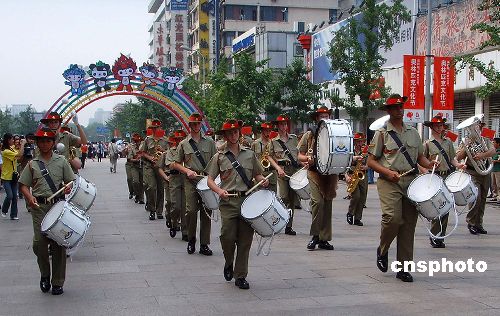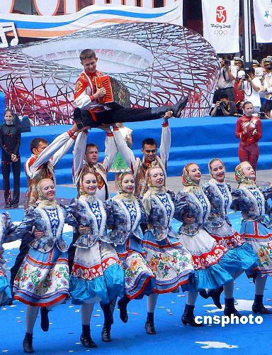 2006年7月13日是北京申奥成功五周年纪念日,为期三天的“共同奏响奥运主题曲”活动在北京王府井大街拉开帷幕。来自13个国家和地区的艺术家为首都观众献上了一台极具民族特色的精彩演出。中新社发 玉龙 摄