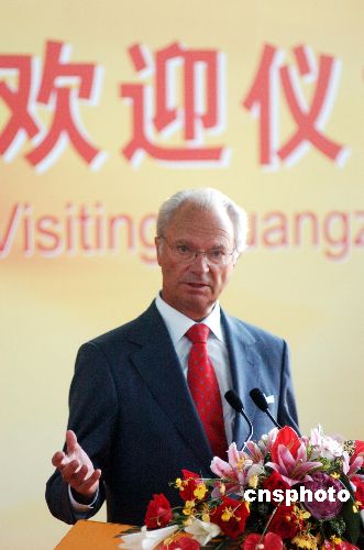 十八日上午,瑞典国王卡尔十六世·古斯塔夫和王后西尔维娅乘大型仿古船“哥德堡号”抵达广州南沙客运码头,正式开始对中国进行为期五天的访问。中新社发 柯小军 摄