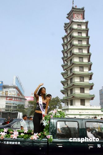 七月一日,二零零六“国际旅游小姐”在河南郑州巡游。当日,来自八十七个国家和地区的八十七位二零零六6国际旅游小姐参加了郑州市举行的入城仪式。随后,佳丽们分乘五十辆花车巡游郑州市区,欣赏郑州城市魅力。中新社发 慎重 摄