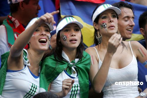 德国汉堡当地时间六月三十日晚,世界杯四分之一决赛意大利与乌克兰的比赛在汉堡世界杯体育场进行,意大利队最终三比零淘汰乌克兰队,晋级四强。图为漂亮的女球迷为意大利队加油助威。中新社发 盛佳鹏 摄