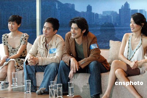 港产警匪电影《伤城》7月9日在香港隆重举行全亚洲开镜新闻发布会。影星梁朝伟、金城武、舒淇、徐静蕾出席发布会,并回答记者提问。中新社发 邓庆乐 摄