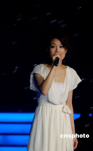 七月十三日晚,“志愿北京”演唱会暨首届北京青少年多米诺大赛颁奖晚会在北京航空航天大学体育馆举行。作为第四届北京2008奥林匹克文化节的一个主题官方活动,这场演唱会吸引了刘欢、那英、孙楠、容祖儿和蔡依林等众多来自两岸三地的明星到场献歌。中新社发 韩艺冰 摄